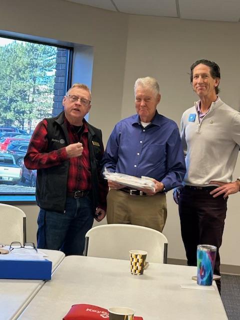February 18th: At today’s Sunrise Rotary Club, we were pleased to induct our newest member, Dick Thomas (pictured between Tom Keyton and Bill Simmermon). Bill was kind enough to do the honors as he is the one who first met and encouraged Dick to consider Rotary. Dick is a longtime Sertoma member and his servant heart has expanded into Rotary!