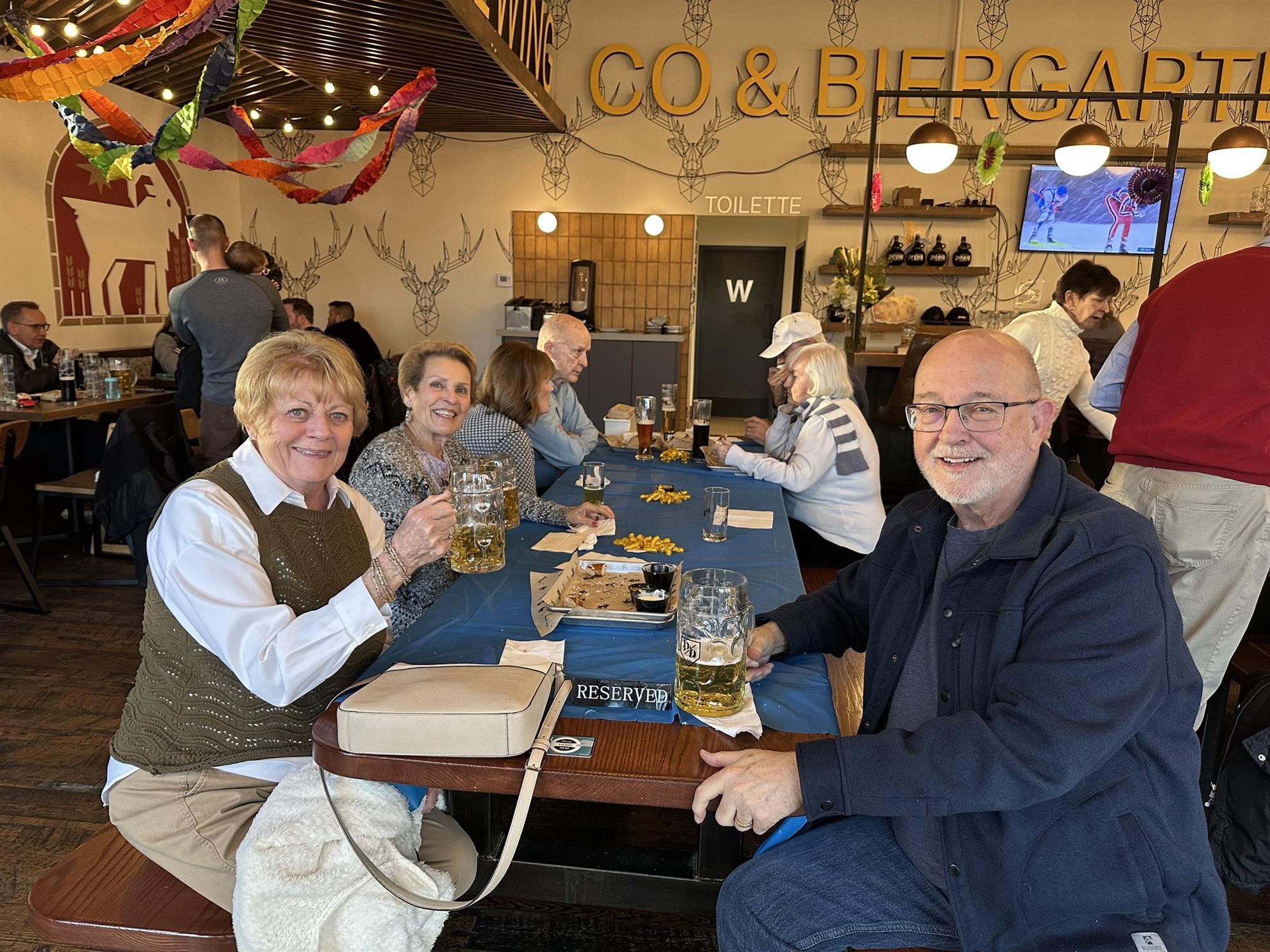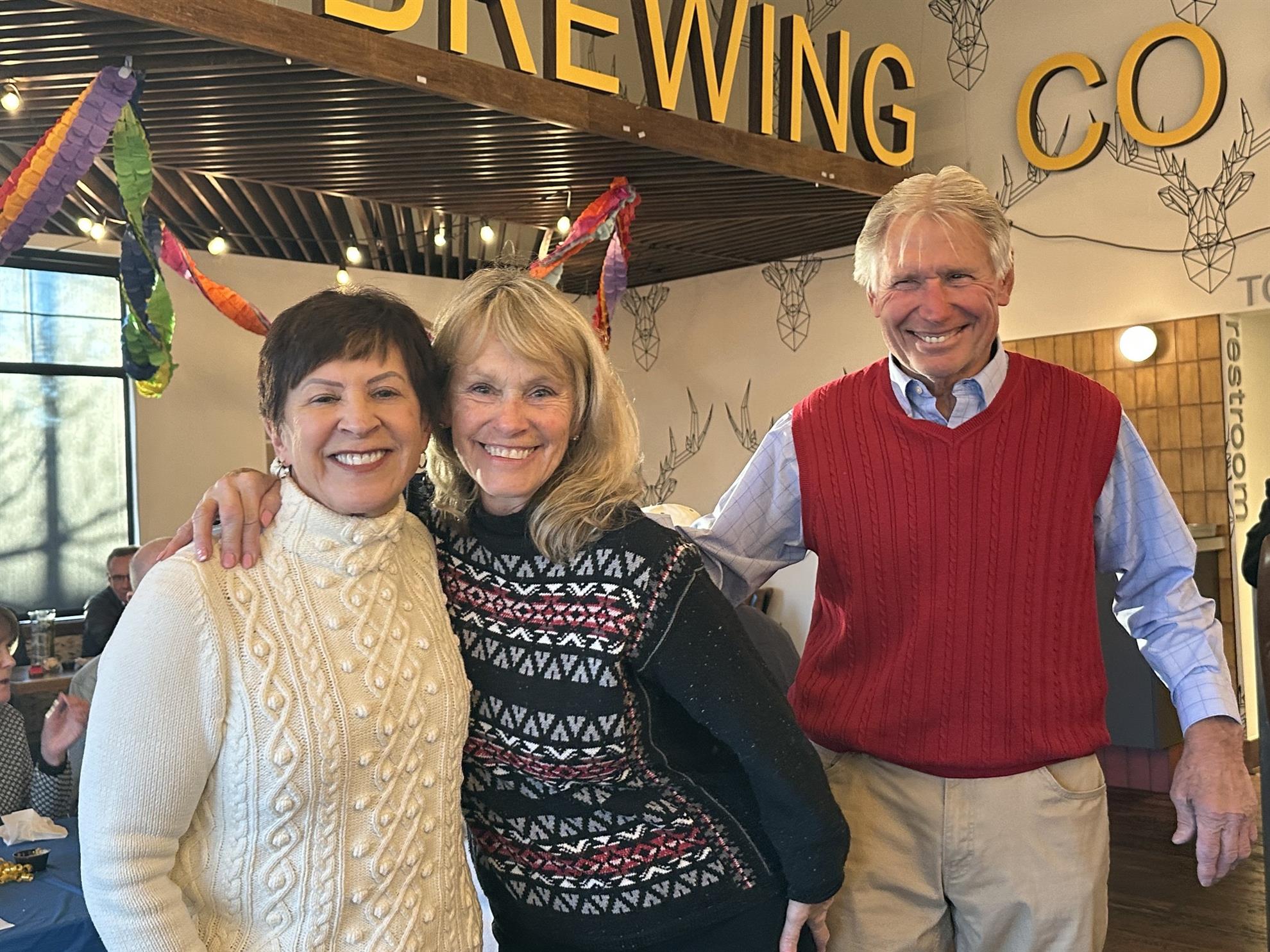 Debbie Leonard with Jane and Kyle Kucharski (taking a day off from his stunt doubling for Harrison Ford), celebrating their friendships at the Prost Brewing Company “get together.”